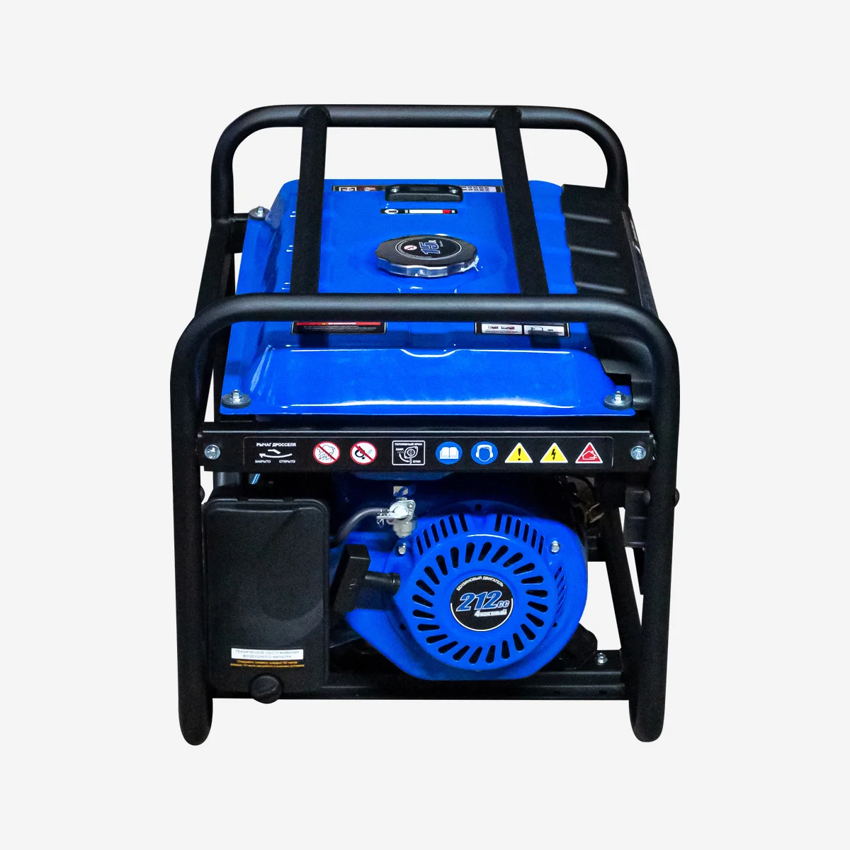 Генератор работает на бензине марки АИ-92, обеспечивая стабильную работу и экономичность. Расход топлива составляет 1.45 л/ч, а объем бака - 15 л. Генератор оснащен глушителем, что снижает уровень шума при работе.