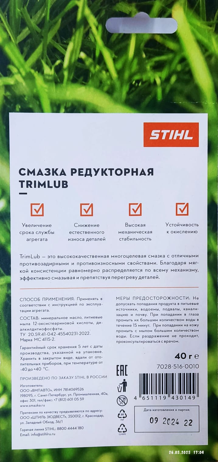 Смазка редукторная TRIMLUB Stihl 40 г.